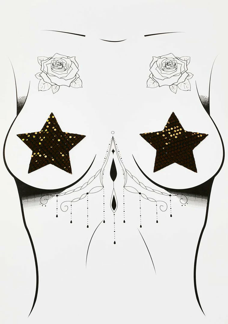 you shine brighter than the stars! These nipple pasties have self-adhesive backings for an easy application, a star shape, and a holographic design with a mesh overlay.