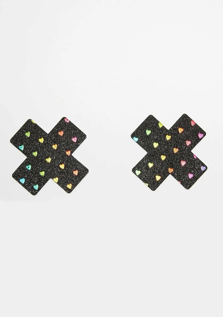 cuz your love sees no limits! Make it last foreva in these hott multi-use nipple pasties that have a cross-shaped design with lil hearts all ova and are self-adhesive.