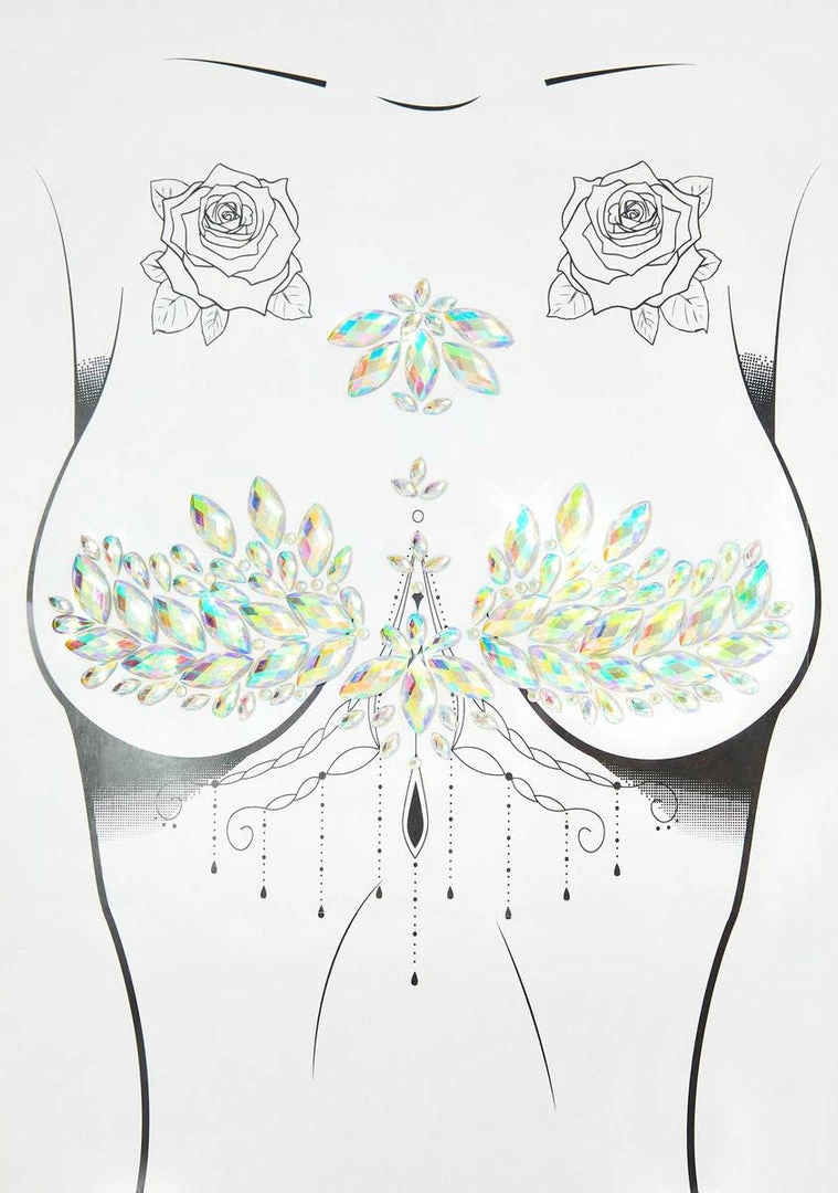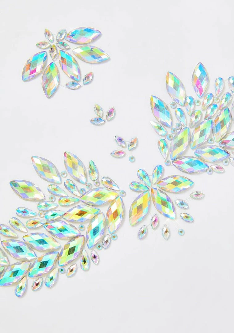 yer the only star we see tonight! Ready, set, rave in this pasties set that has iridescent crystal gems that have a skin-safe adhesive and apply supa easily all ova ya body.