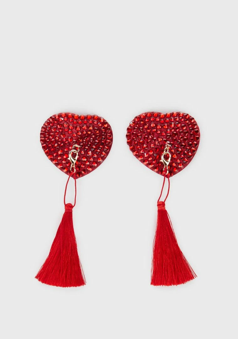 cuz make some moves. Be provocative with these heart shaped crystal tassel pasties that are made from a reusable silicone, are self-adhering, have detachable tassels, and can last up to 12 hours.