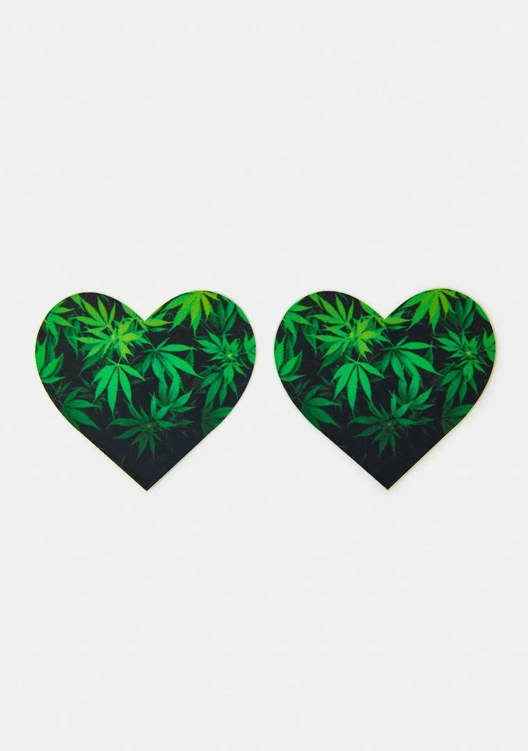 feature a weed leaf print all over and heart shape.