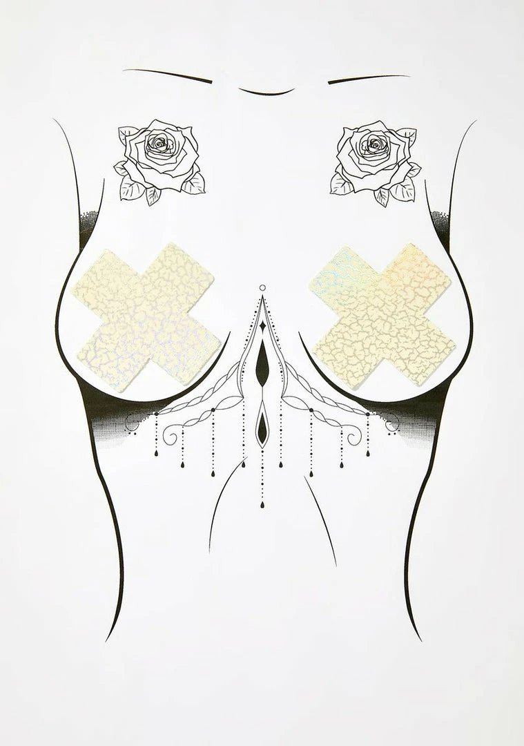 gotcha lookin’ like a glowin’ goddess. Every qween deserves to shine in these cross pasties that are self adhesive N’ easy AF to apply.