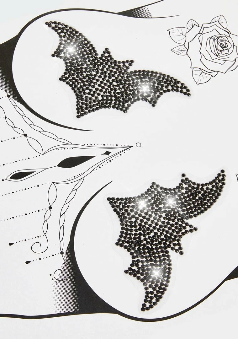 have self-adhesive backings for an easy application, a bat-shaped design, and rhinestones all over.