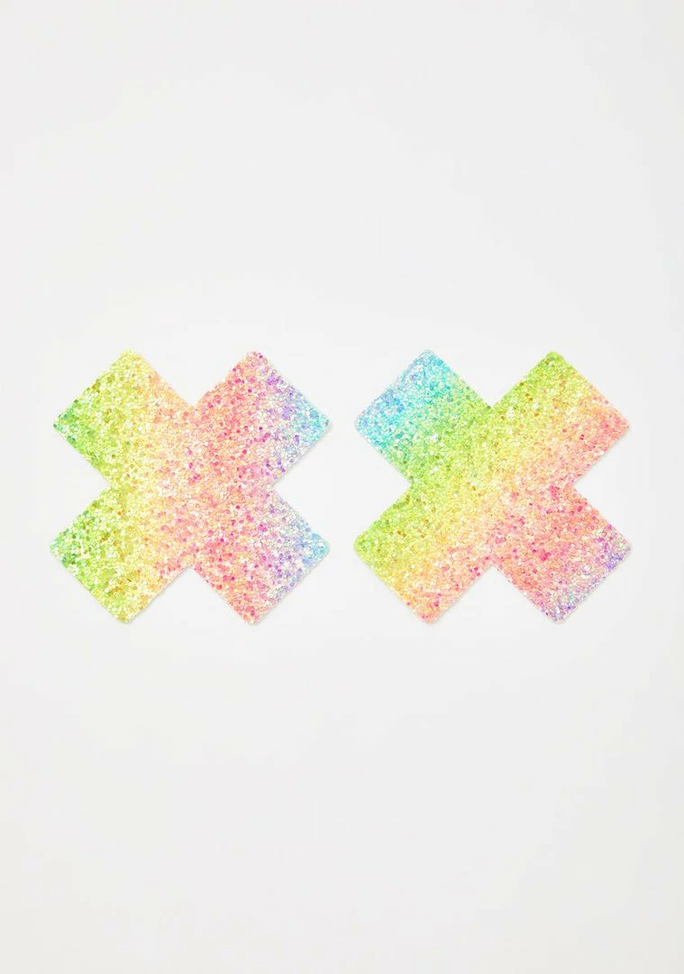 cuz ya keep the party alive, babe! Make it last all night in these hot AF reusable pasties that have a glittery criss-cross X design and adhere supa safe N’ easily to the skin.