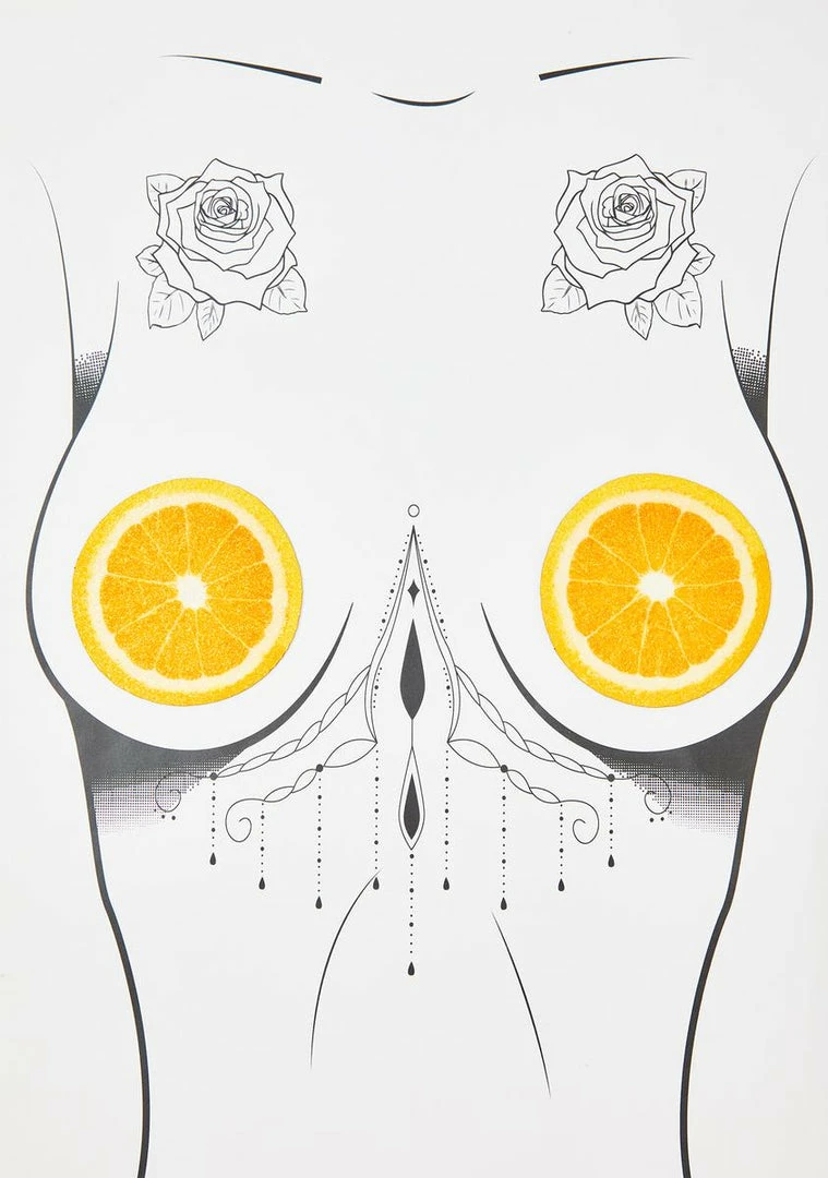 ya got the juice, babe! Keep it sweet in these cute pasties that have an orange slice design and apply easily Nâ safely to the skin.