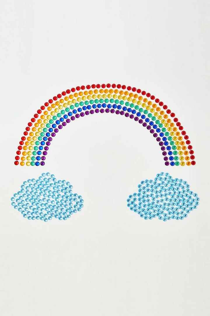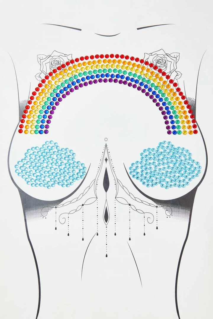 cuz baby you were born this way! You’re the pot of gold at the end of the rainbow when ya wear this iridescent crystal pasties set that has a cloud N’ rainbow design and applies with a skin safe adhesive and applies easily to the skin.