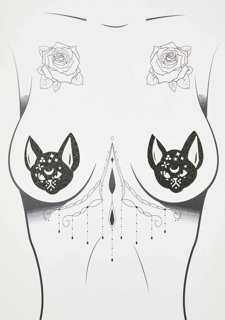 Be the first to review “Neva Nude Pasties & Tatts Black Cat Glitter UV Pasties” Cancel reply