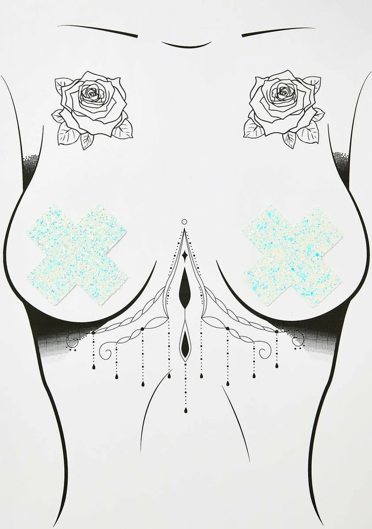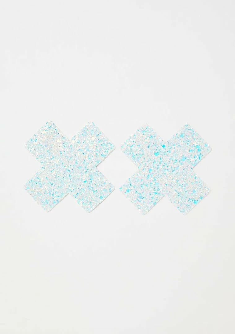 cuz youâre the coldest ice queen. Freeze âem in their trackz with these X-shaped chunky glitter pasties that are self-adhesive, skin safe Nâ easy AF to apply.