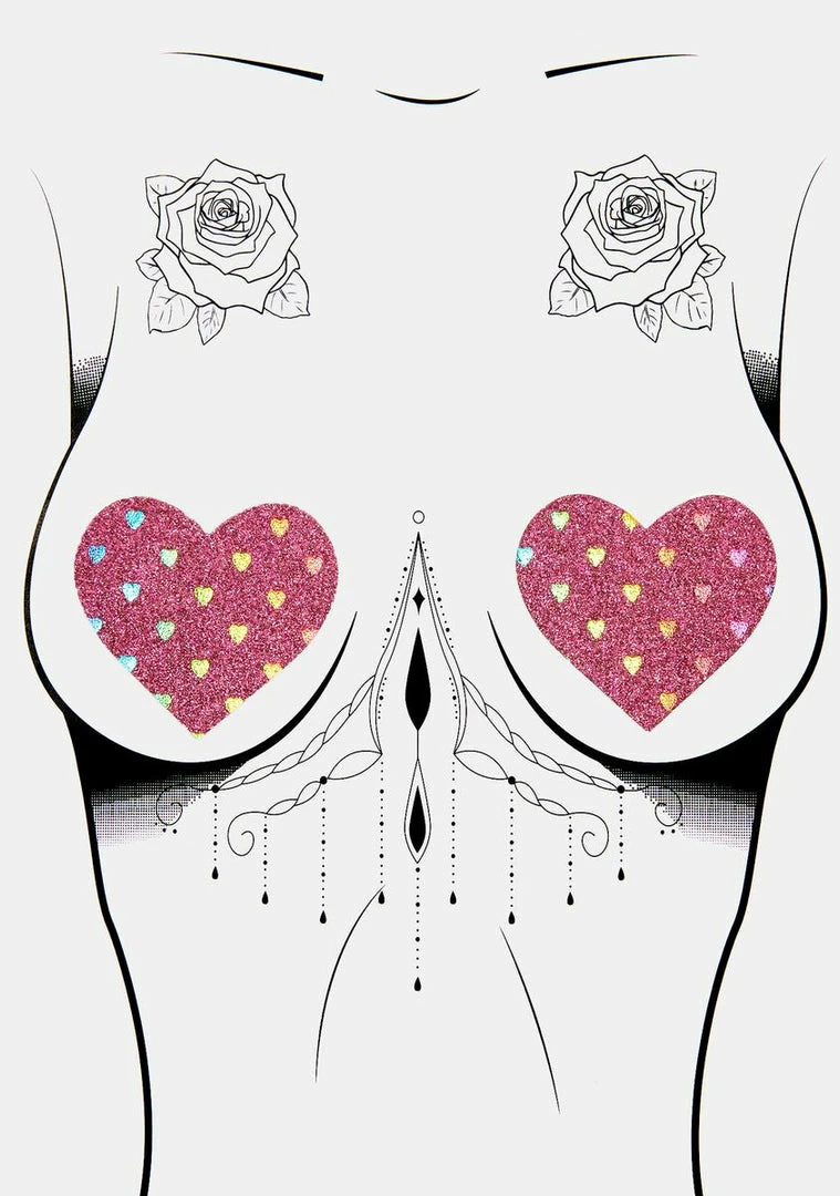 cuz your love sees no limits! Make it last foreva in these hott multi-use nipple pasties that have a heart-shaped design with lil hearts all ova and are self-adhesive.