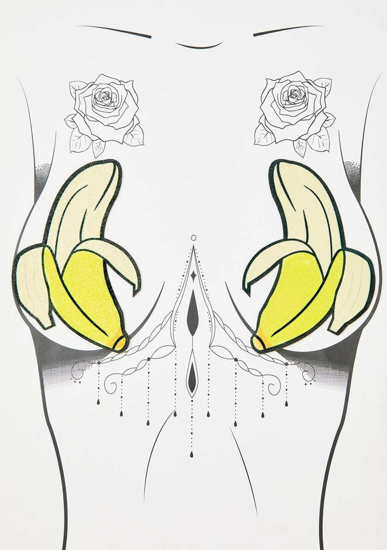 got âem peelinâ some typa way, bae. Ya keep it juicy in these sweet pasties that have yummy peeled banana designs and adhere easily Nâ safely to the skin.