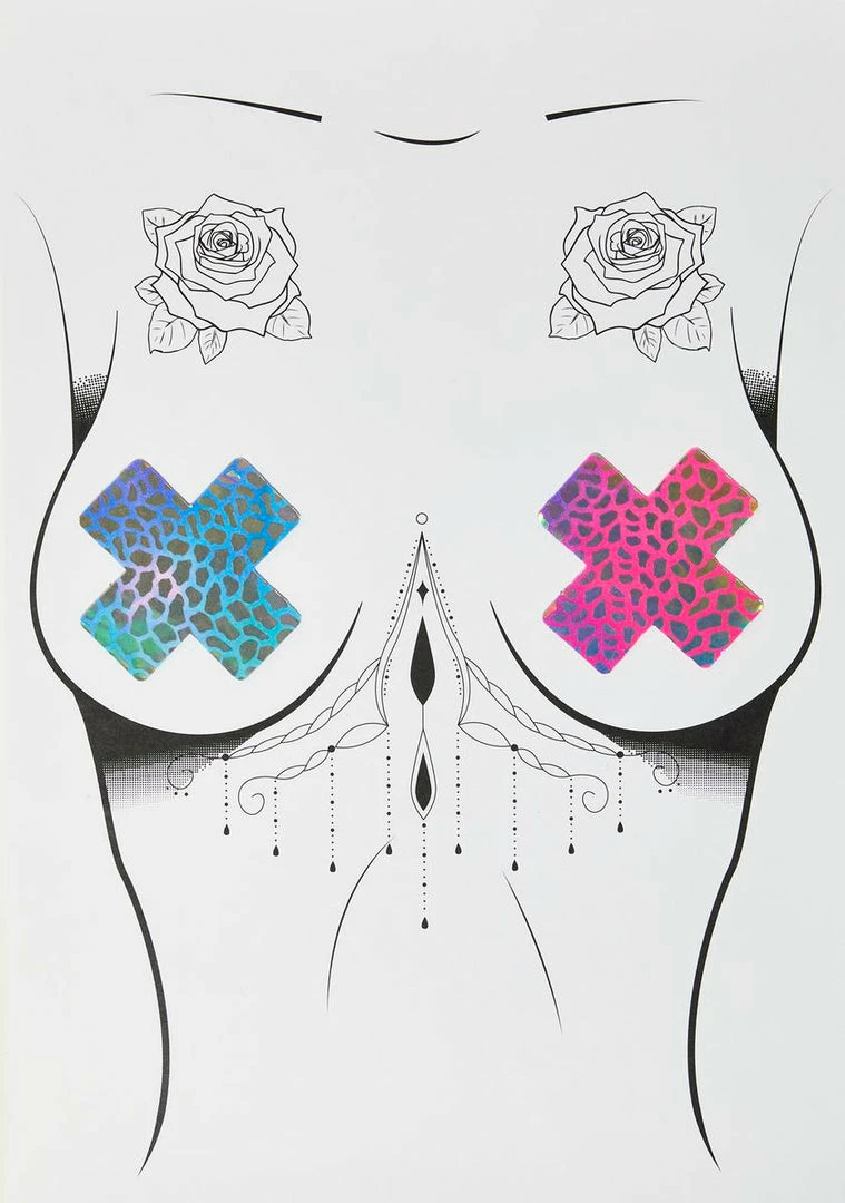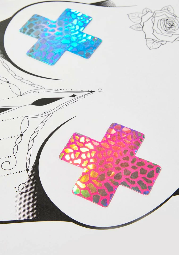 cuz show some pride babe! These neon rainbow X shaped pasties have holographic foil scales and self-adhesive backings.