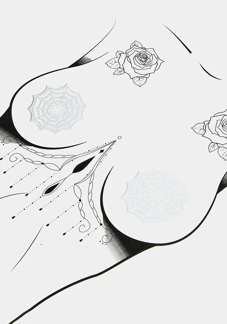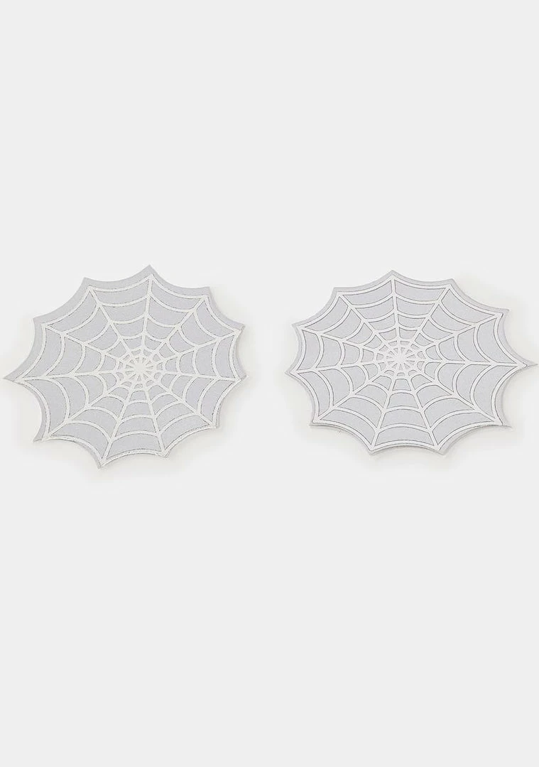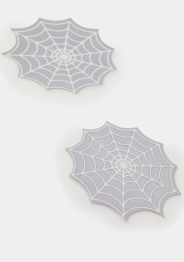 cuz step into my web. These reflective spider web pasties have self adhesive backings and can last for 10-12 hours.