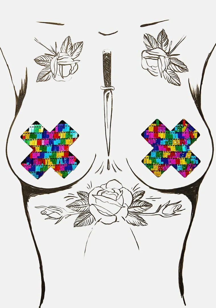 cuz youâre the life of the party. Shake Nâ sparkle in these dope rainbow X pasties that adhere to your skin with maxxx comfort.