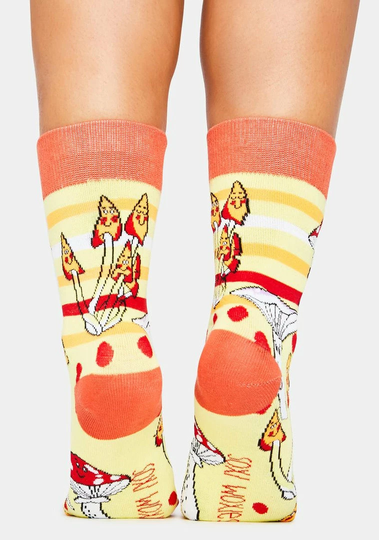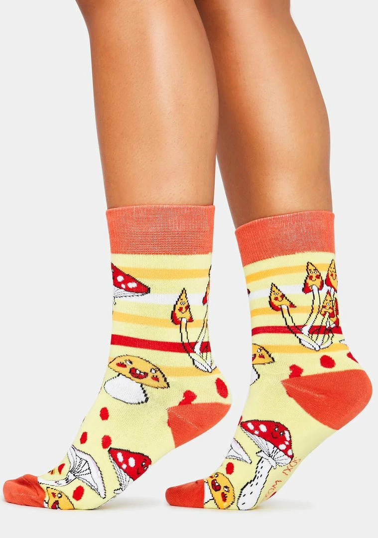 because youâre always ready for the next trip. These crew socks have a mushroom design.