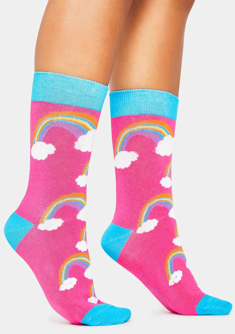 because one day you will find your hidden treasure. These crew socks have a rainbow graphic.